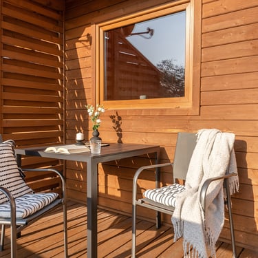 dodatkowo: meble ogrodowe (stół + krzesła), parasol, parawan, leżak/krzesło plażowe, grill + akcesoria (szczypce itp.) dostęp do internetu (wi-fi)